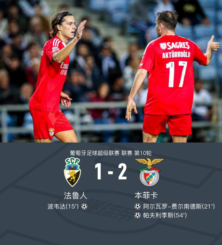 本菲卡2-1逆转法鲁人,帕夫利季斯、阿尔瓦罗-费尔南德斯建功