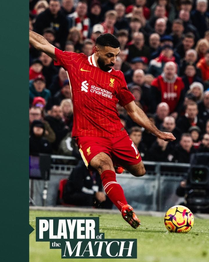赛后,利物浦官方宣布,萨拉赫被球迷评为队内本场最佳球员。