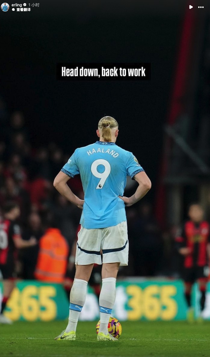 赛后,哈兰德更新社交媒体,写道:“埋头继续工作。”