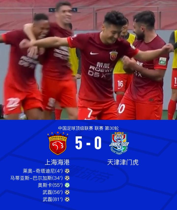 【雪佛龙|海港5-0津门虎夺队史第三座中超冠军!武磊独造五球】