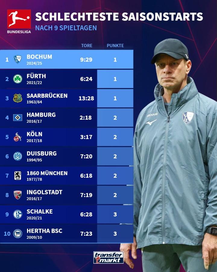1、波鸿 24-25赛季 进9球丢29球 积1分