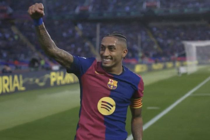 在巴塞罗那对阵西班牙人的加泰德比中,巴萨队长拉菲尼亚破门,打入了个人本赛季第11球。