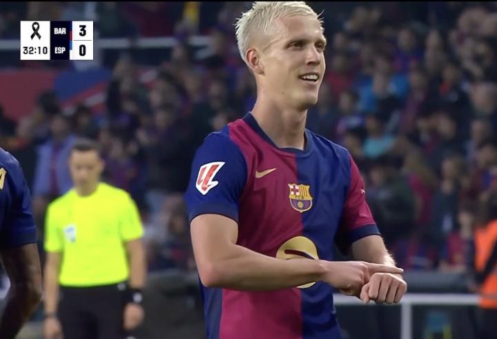西甲第12轮,巴塞罗那主场对阵西班牙人,奥尔莫上半场上演梅开二度,至此,奥尔莫西甲生涯5场比赛已打入5球,追平了他五大联赛生涯单赛季进球纪录。