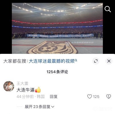 赛后,大连英博在社媒中发布冲超庆典视频。正在韩国备战亚冠联赛的王大雷在评论区留言,祝贺家乡球队冲超,王大雷写道:“大连牛X”。
