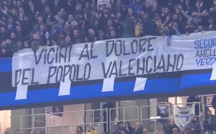因此,国米球迷举起了声援瓦伦西亚受灾群众的横幅,该横幅上写着:“与瓦伦西亚人民的痛苦同在。”