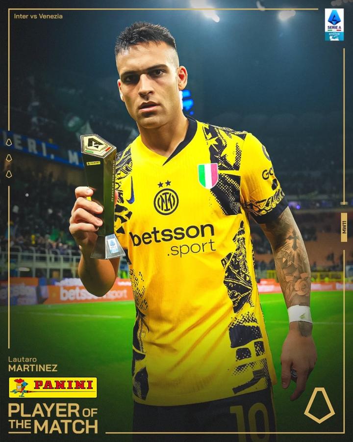 在意甲第11轮的比赛中,劳塔罗-马丁内斯第65分钟打进全场唯一进球,最终帮助国际米兰在主场1-0艰难战胜了升班马威尼斯,在排名重新回到积分榜第二位的同时,也将他们与领头羊那不勒斯的积分差距缩小到了1分。赛后,劳塔罗被意甲官方评为了本场比赛的最佳球员。