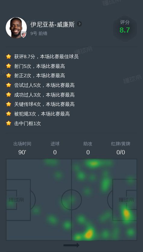 北京时间11月4日毕尔巴鄂竞技vs皇家贝蒂斯,伊尼亚基-威廉斯4次关键传球,5次射门,3次成功过人。