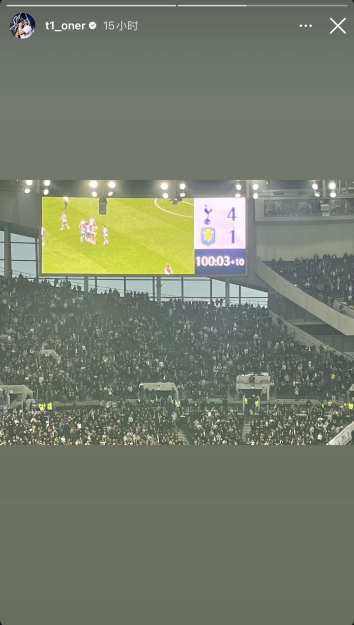 T1上单Zeus在社媒晒照自己身穿孙兴慜7号球衣;辅助Keria和打野Oner都在社媒晒照热刺4-1维拉的比分图。