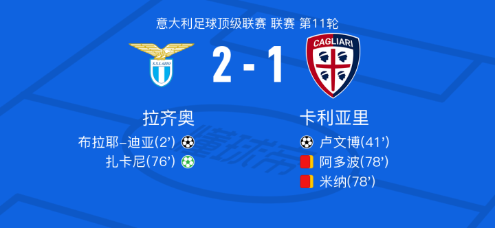 北京时间11月5日拉齐奥vs卡利亚里,扎卡尼得到全场最高的7.7分,佐尔泰亚得到全场最低的5.8分
