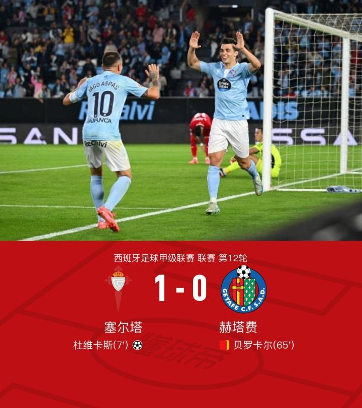 塞尔塔1-0赫塔费,杜维卡斯打进唯一进球