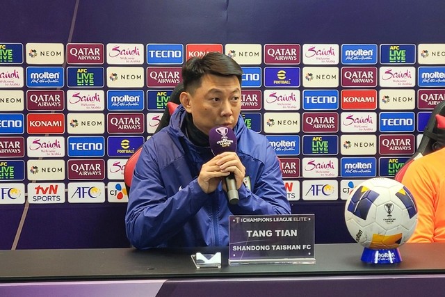 亚冠精英联赛客场对阵浦项铁人赛前,山东泰山队助理教练唐田出席了新闻发布会。