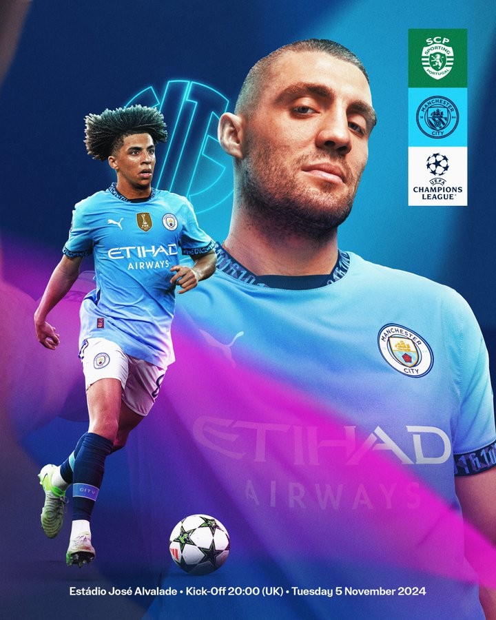 北京时间明天凌晨4点,曼城将迎来欧冠联赛阶段第四轮客场对阵葡萄牙体育的比赛,赛前,曼城官方在社交媒体上发布了本场比赛的预热海报。
