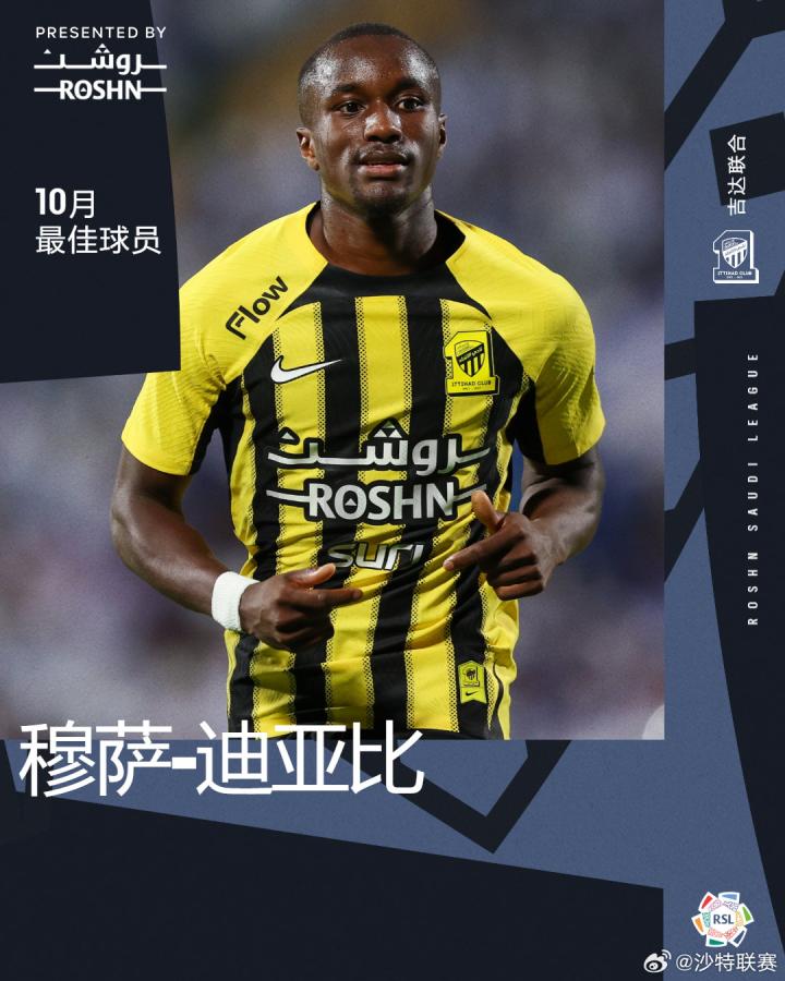 沙特联赛官方:恭喜穆萨-迪亚比,当选沙特联10月最佳球员!他在10月份4场联赛场均贡献1次助攻。