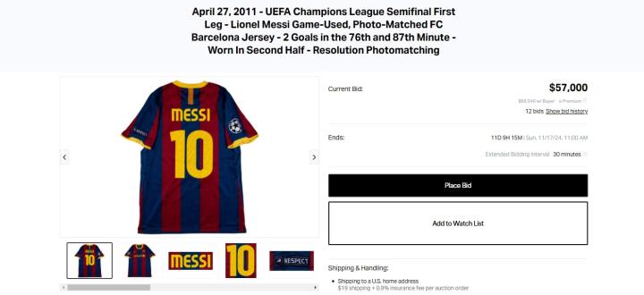 根据《阿斯报》的最新报道,梅西在2011年对阵皇马的欧冠半决赛首回合比赛中所穿的球衣正在被拍卖,起步价2.5万美元,目前已经被炒到了5.7万美元。