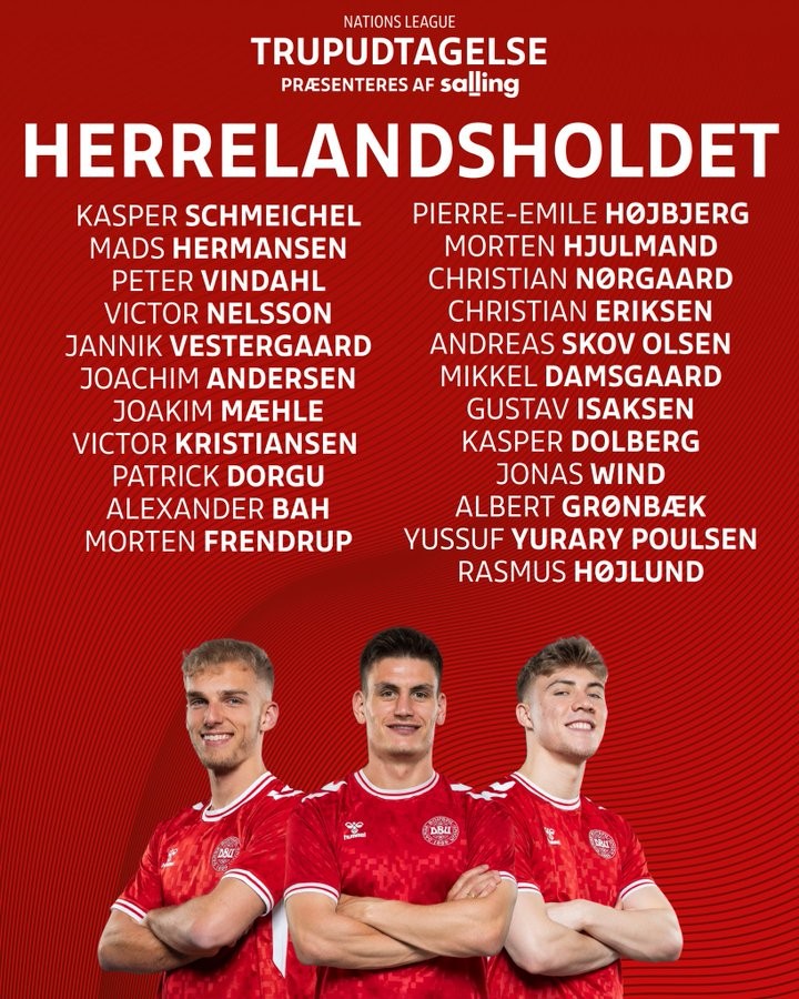 北京时间11月5日,丹麦国家队公布了新一期的大名单,其中埃里克森领衔,赫伊别尔、霍伊伦均在列。