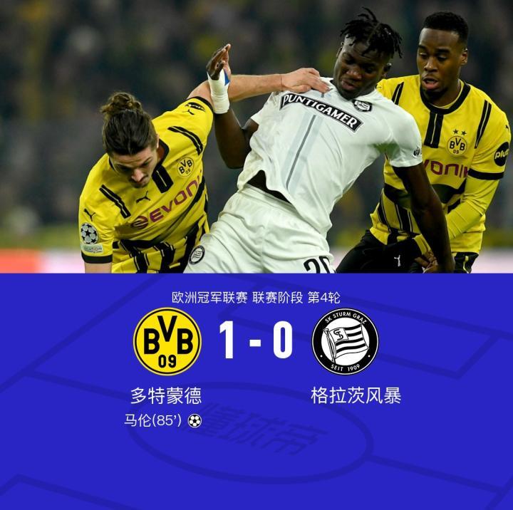 多特1-0格拉茨风暴,塞罗-吉拉西助攻马伦破门,萨比策造险