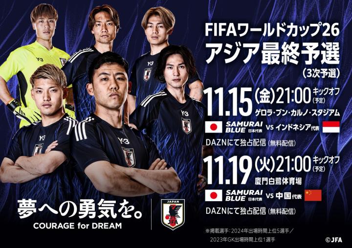 官方消息,DAZN日本将免费直播日本客战中国与印尼的18强赛。