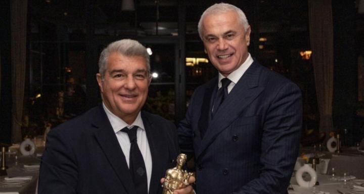 在巴塞罗那对阵贝尔格莱德红星赛前一天,巴萨主席拉波尔塔出席了晚宴,并与对方CEO交换了礼物。