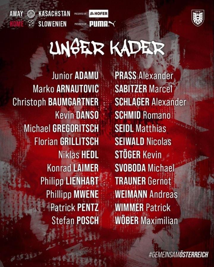 在11月的国际比赛日里,奥地利将会对阵他们欧国联的对手哈萨克斯坦和斯洛文尼亚。