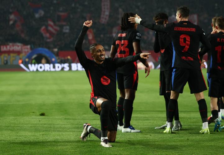 欧冠联赛阶段第4轮客场挑战贝尔格莱德红星的比赛中,拉菲尼亚的进球帮助巴塞罗那取得4-1的领先。