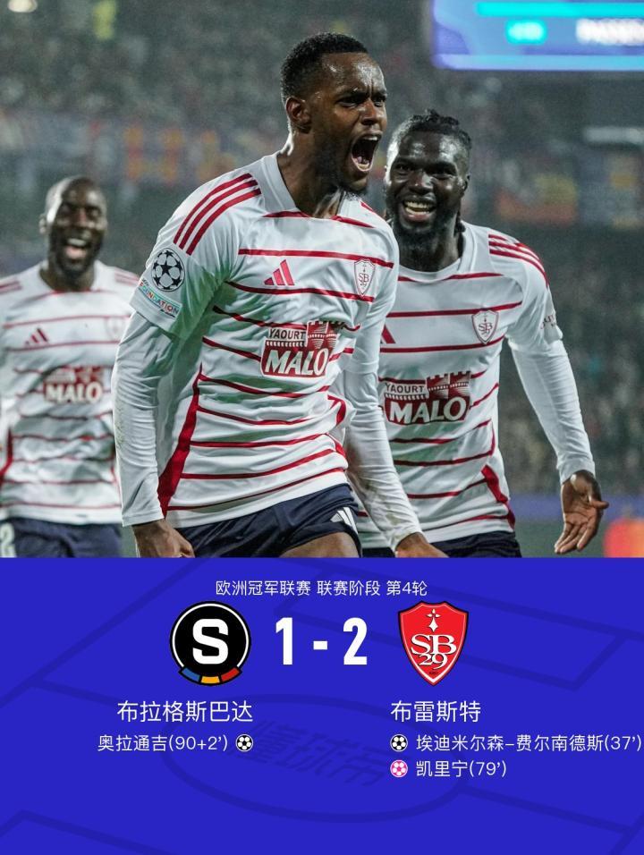 布拉格斯巴达1-2布雷斯特,埃迪米尔森破门,凯里宁自摆乌龙