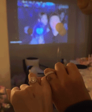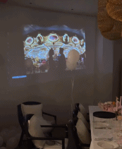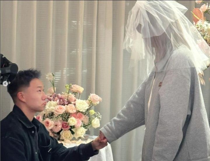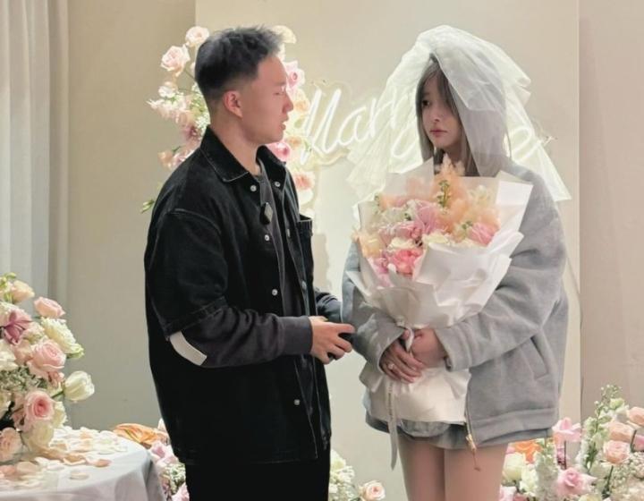 从图片里可以看到,陈宇浩布置了浪漫的求婚仪式。投影中播放的一张张照片,述说着两人爱情之路的甜蜜。
