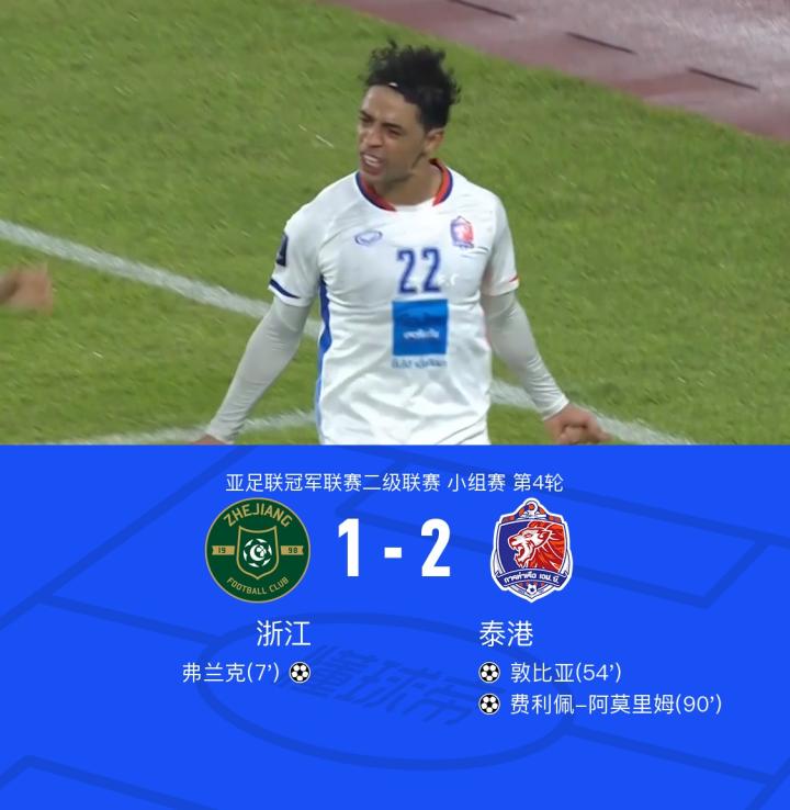 浙江1-2泰港掉至小组末位,阿莫里姆绝杀,岳鑫倒地未吹