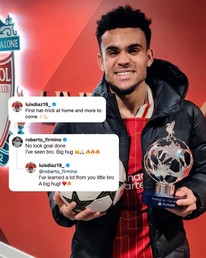 随后路易斯-迪亚斯回复:“我从你身上学到了很多,兄弟!一个大大的拥抱。❤️”