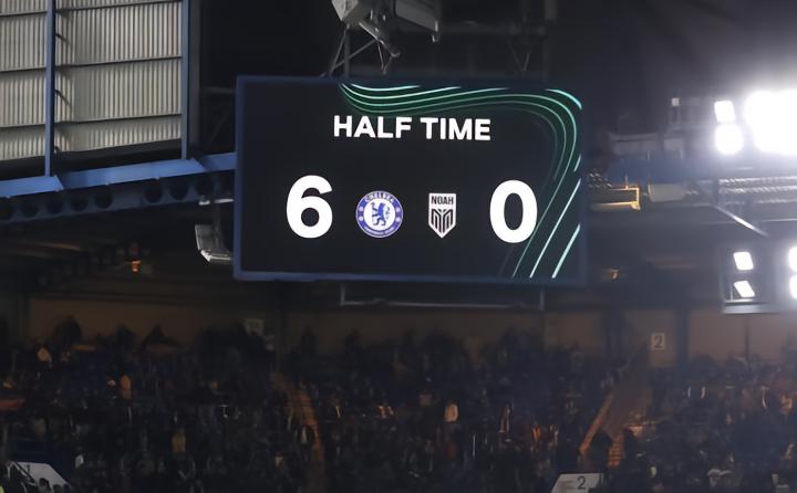 此役主场对阵亚美尼亚球队诺亚,切尔西在上半场战罢取得6-0领先。