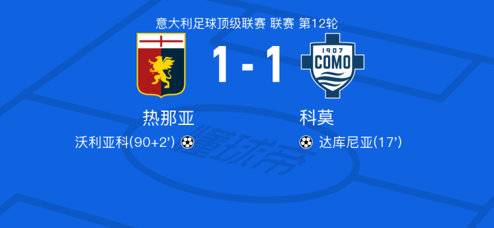 北京时间11月8日热那亚vs科莫,尼科-帕斯得到全场最高的8.2分,马尔坎达利得到全场最低的6.0分