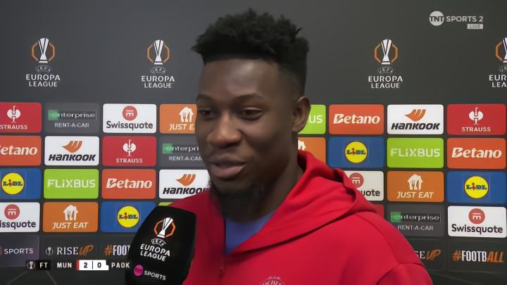 在欧联杯联赛阶段第4轮主场2-0击败塞萨洛尼基之后,曼联门将奥纳纳接受了来自TNT体育的采访。