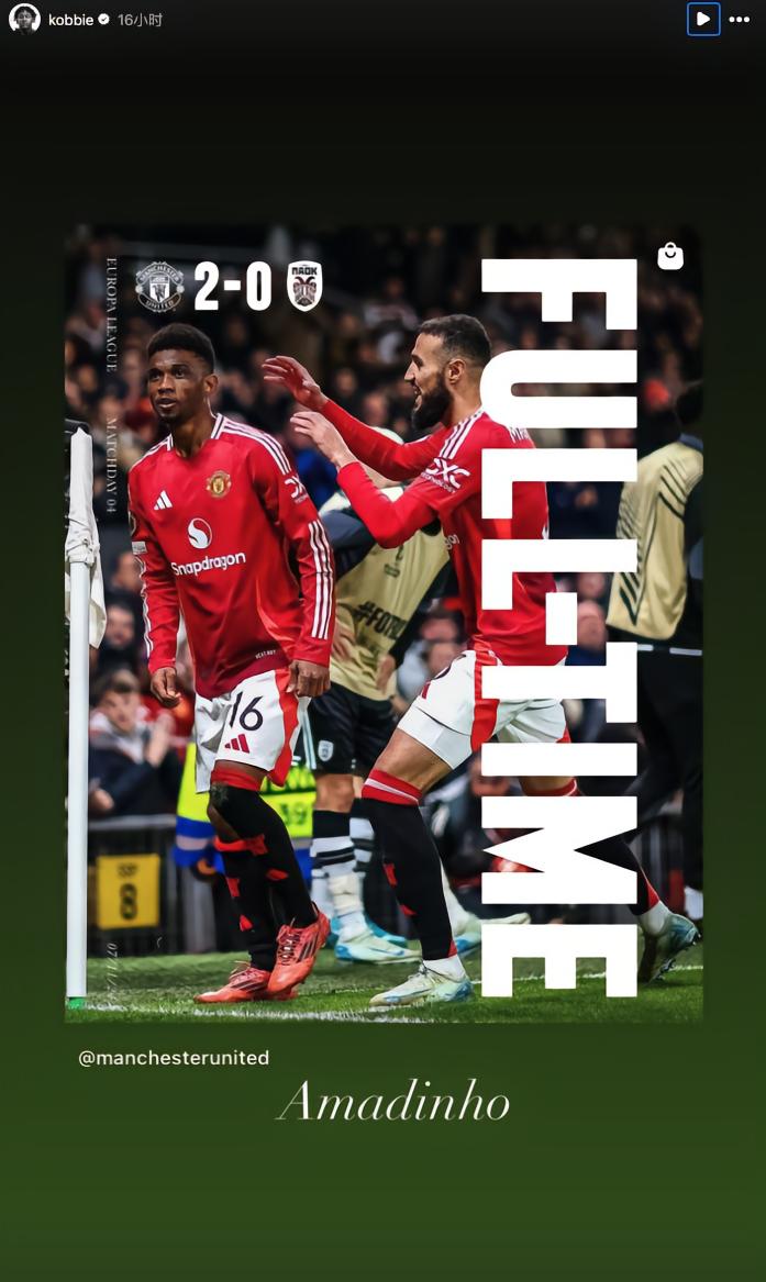 在与塞萨洛尼基的欧联杯比赛中,首发出战的阿马德-迪亚洛上演梅开二度,帮助曼联2-0击败对手,时隔380天再度在欧战赛场赢球。