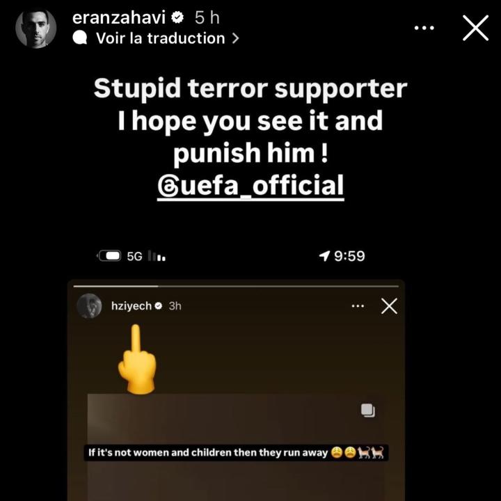 这位出生在荷兰的摩洛哥球员在社媒体发布了一则信息,以讽刺特拉维夫马卡比在与阿贾克斯的欧联杯比赛期间遭遇袭击的以色列球迷。