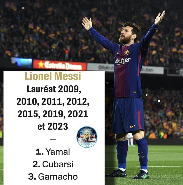 按照科帕奖的评选规则,评审均为此前获得过金球奖的得主,每个人都有三个顺位的选票,被梅西放在第一顺位的是亚马尔,这位巴萨小将最终获得了2024年科帕奖,梅西的科帕奖投票中排在第二位的是另一位巴萨球员库巴西,第三位的则是阿根廷国家队队友加纳乔。