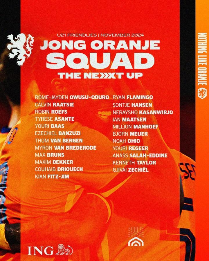 11月9日,荷兰U21国家队公布了11月的大名单,其中华裔球员菲慈佔-天乐入选。
