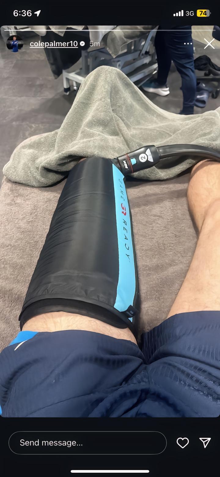 而据当地时间本周五帕尔默晒出的照片显示,帕尔默受伤的左腿正在接受治疗,同时帕尔默穿着训练服,可能在进行单独训练。