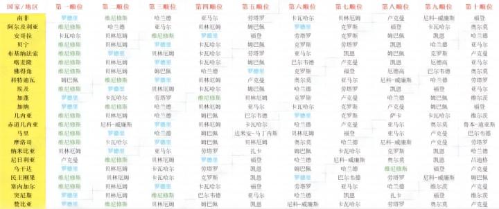 共有22个来自非洲足联国家/地区的记者参与投票,分别是: