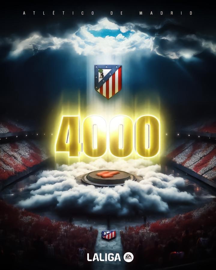西甲官方微博发文祝贺马德里竞技达成西甲联赛4000分里程碑。