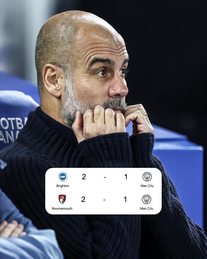 各项赛事最近四场比赛,曼城全部遭遇失利,其中包括两场英超,先后输给伯恩茅斯和布莱顿。