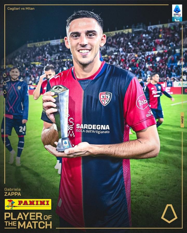 在意甲第12轮的比赛中,扎帕完成的梅开二度帮助卡利亚里主场3-3战平了AC米兰,赛后这名意大利右后卫当选了意甲官方评选的全场最佳球员。