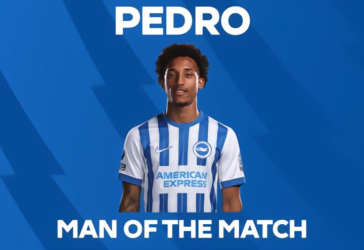 英超第11轮,布莱顿主场2-1逆转击败曼城,此役替补登场传射建功的若昂-佩德罗当选英超官方全场最佳球员。
