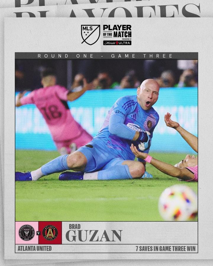美职联官方消息,亚特兰大联门将古赞当选迈阿密国际vs亚特兰大联全场最佳球员。