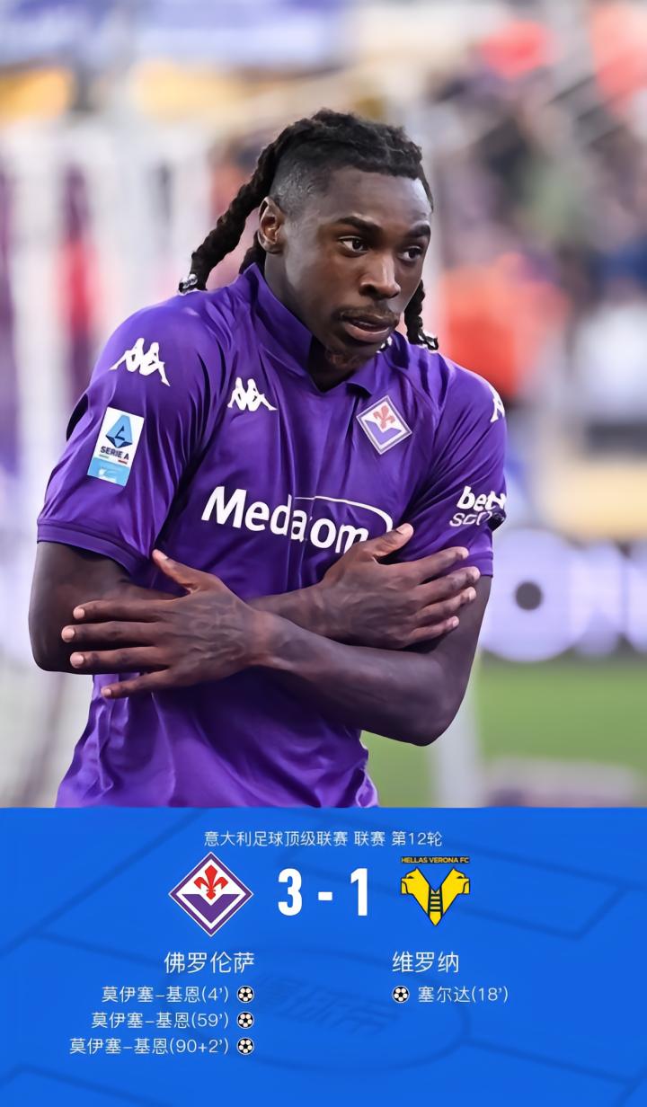 佛罗伦萨3-1维罗纳迎意甲6连胜,基恩戴帽,塞尔达世界波