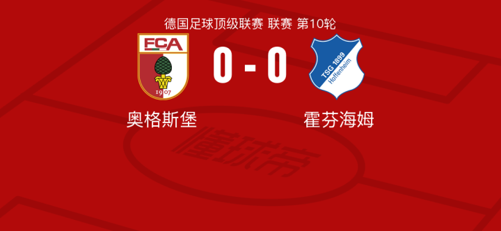北京时间11月10日奥格斯堡vs霍芬海姆,赫维勒乌得到全场最高的7.9分,马斯-彼泽森得到全场最低的6.1分