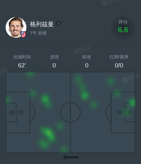 北京时间11月10日马略卡vs马德里竞技,格列兹曼。