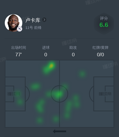 北京时间11月11日国际米兰vs那不勒斯,卢卡库1次成功过人。