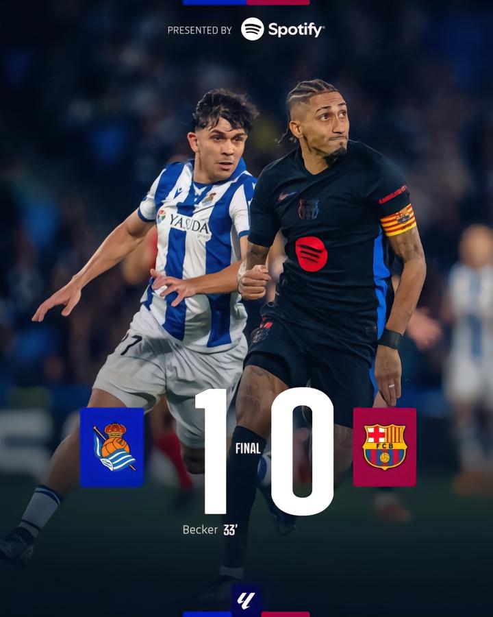 结果本场比赛巴萨0-1告负,这是他们自2016年4月以来首次在阿诺埃塔球场输球,当时巴萨也在客场0-1不敌皇家社会。