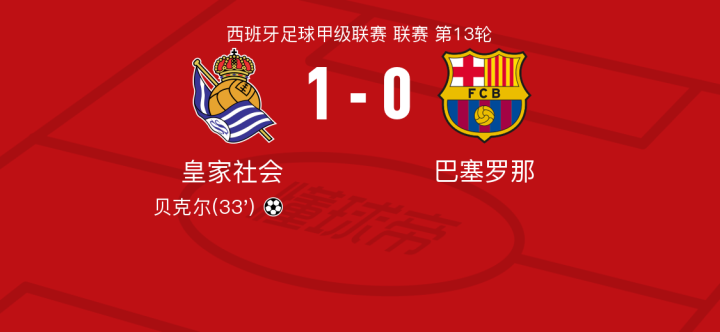北京时间11月11日皇家社会vs巴塞罗那,贝克尔得到全场最高的7.8分,保-维克托得到全场最低的6.0分
