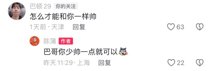评论区里陈蒲与津门虎队员巴顿互动
