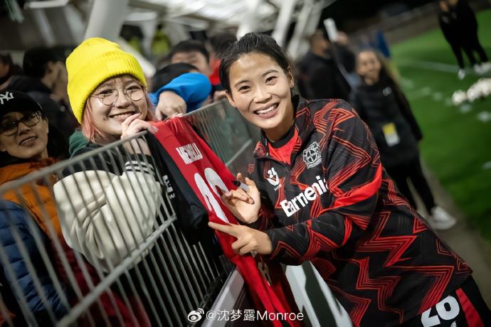 昨晚,留洋效力于德甲勒沃库森女足的中国女足队员沈梦露在微博晒照并写道:“德甲开篇,虽难而进,热血与坚持并肩相随。”